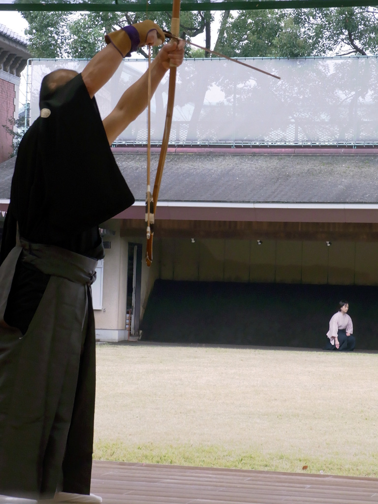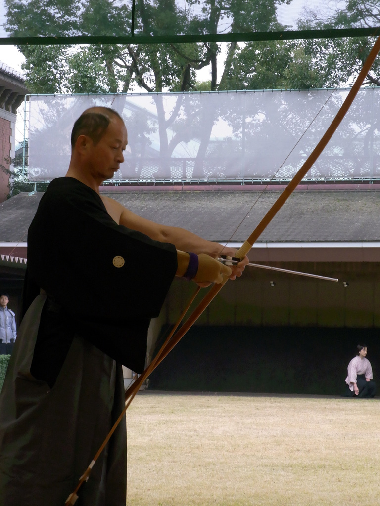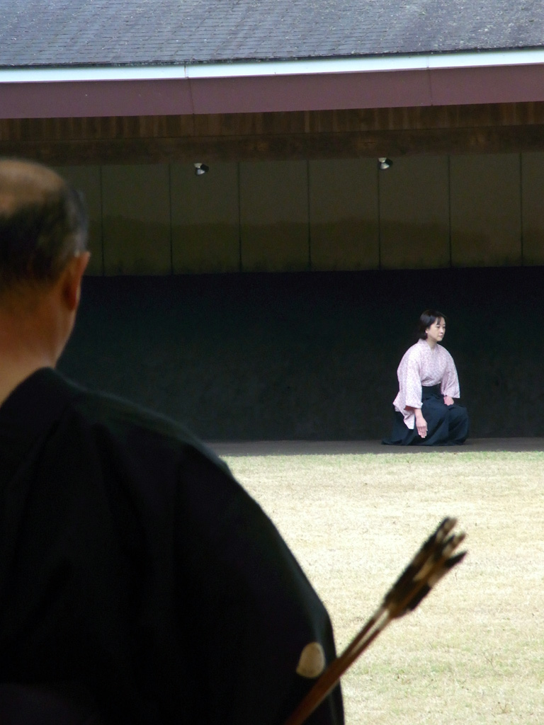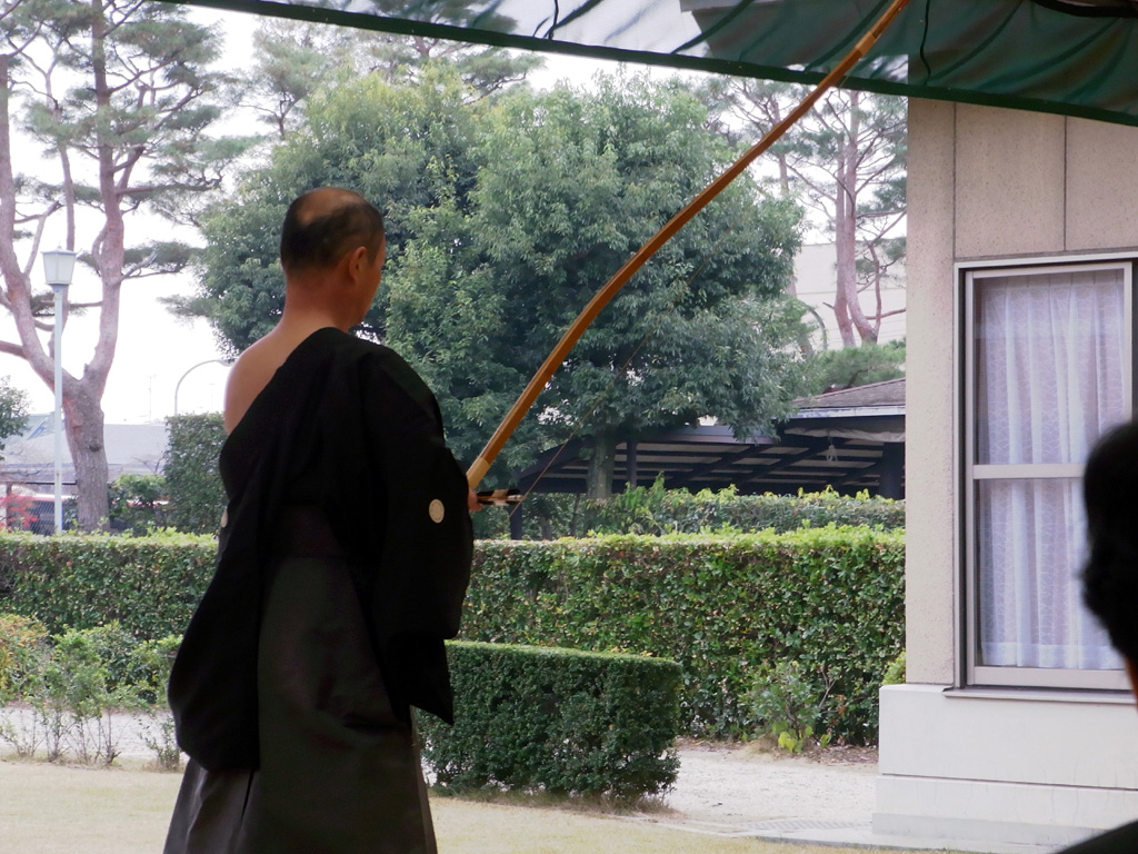 矢渡しを観覧される皆さま。そして事件発生。写真にその真相が写っているかも?しかし望月先生は動じずに矢渡し開始です。