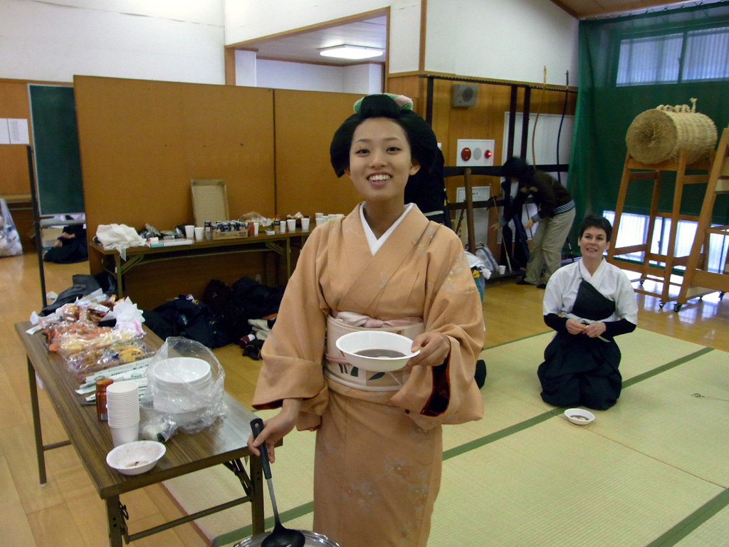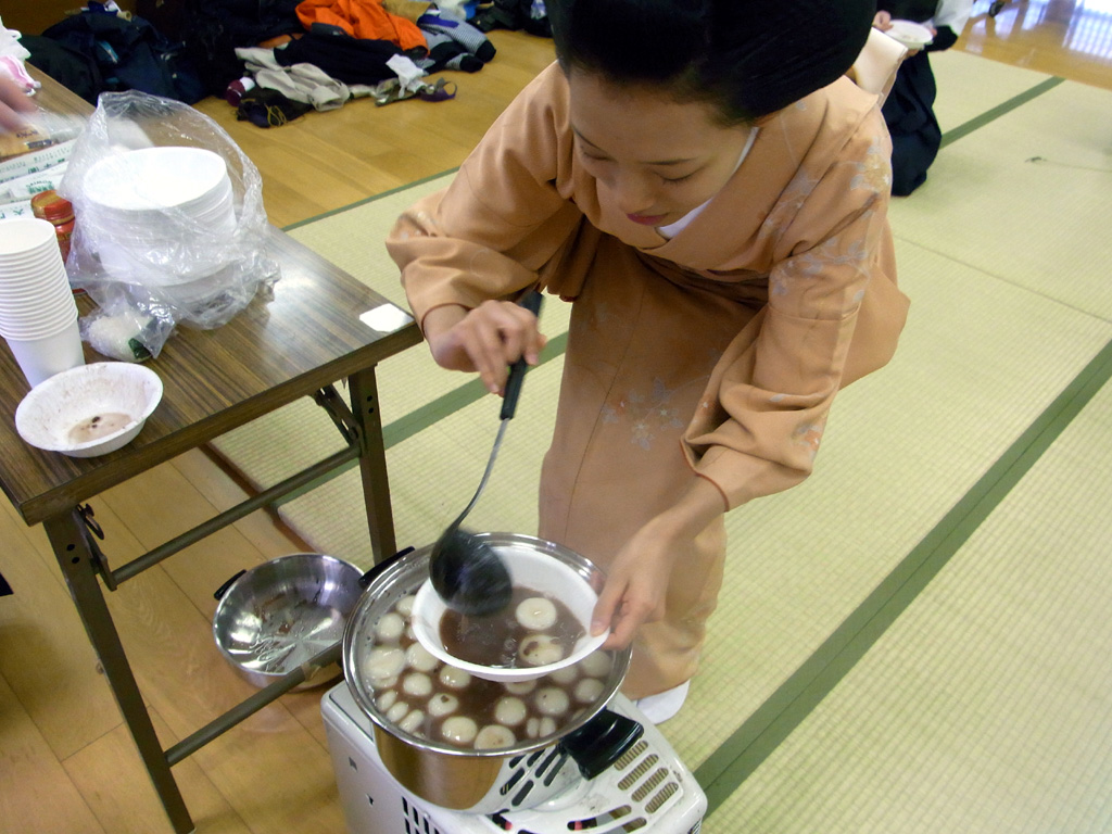 団体戦のあとは舞妓さんの白玉ぜんざいで一息です。あまい!うまい!
