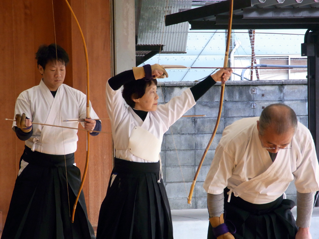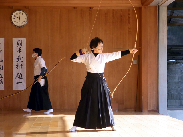 午前中に10本、午後に10本の計20射で競った団体戦です。