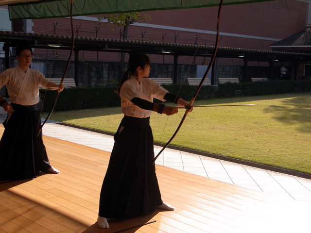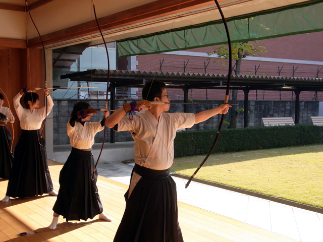 午前中に10本、午後に10本の計20射で競った団体戦です。