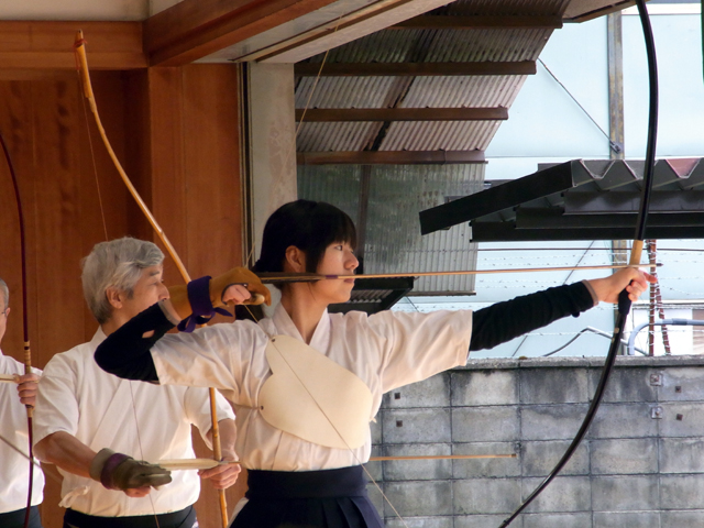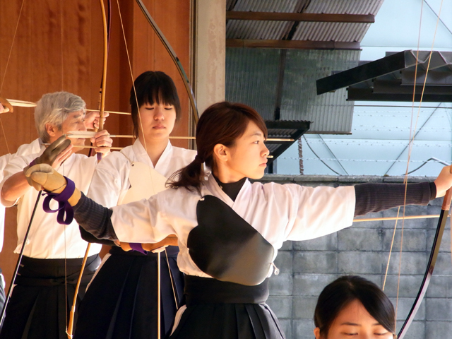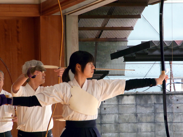 午前中に10本、午後に10本の計20射で競った団体戦です。