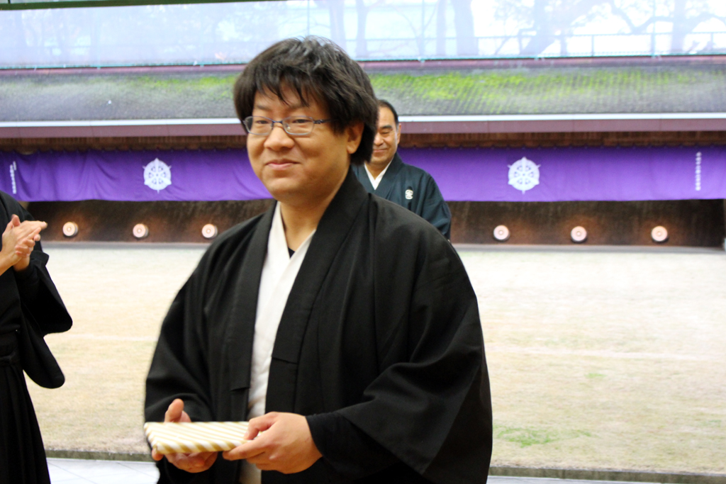 桃陵会内で一番的中した人に贈られる、和子杯です。今年は川崎さんです。