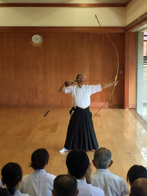 猛暑のため12射の予定が8射に変更となり、望月先生は8射7中で優勝決定戦へ進出。