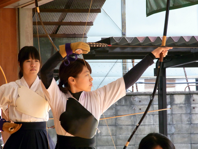 午前中に10本、午後に10本の計20射で競った団体戦です。